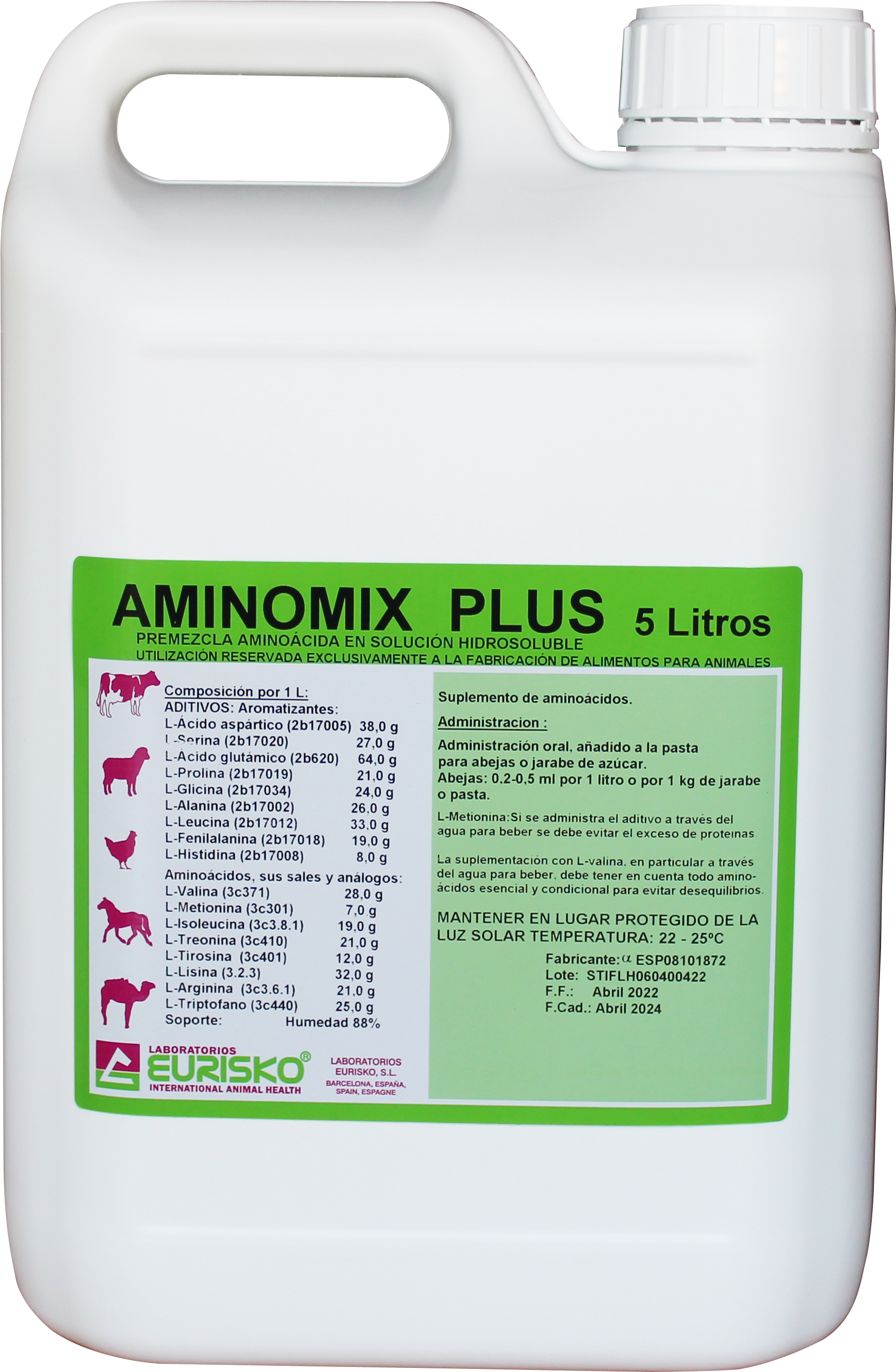 Suplement d'aminoàcids en períodes crítics de la vida de l'animal (període de reproducció, embaràs, canvis d'alimentació i habitatge, i malalties per estrès).
