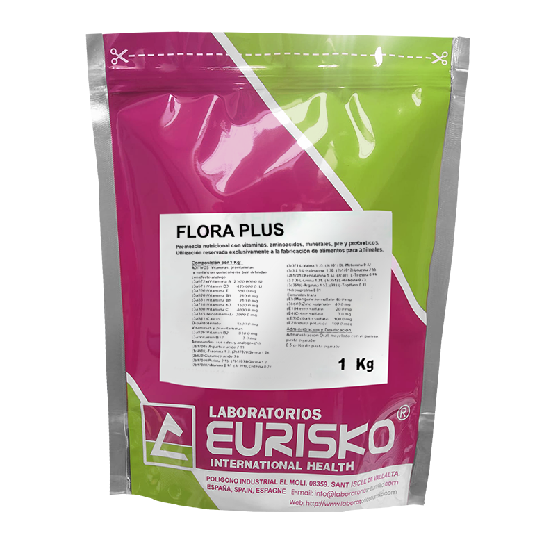 - FLORA PLUS és una premescla nutricional dissenyada per millorar la salut i el benestar dels animals. Conté una barreja de vitamines, aminoàcids, minerals, prebiòtics i probiòtics, que són essencials per a un creixement i desenvolupament òptims. Aquest suplement s'utilitza exclusivament en la fabricació de pinsos per a animals i s'administra barrejant-lo amb el pinso. El seu objectiu principal és enfortir el sistema immunitari, millorar la digestió i promoure un creixement saludable en animals com vaques, porcs i pollastres.